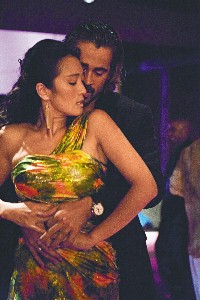 另外一同参加记者会的巩俐则表示,这次接拍《迈阿密风云》是因为角色充满挑战性,她与科林·法瑞尔在戏中拍摄激情戏培养出绝佳默契,虽然语言不通,需要翻译从旁协助,但记者会上两人不时相视一笑,看来感情不错,科林·法瑞尔还不时替巩俐说话,指她为了把跳舞戏拍好,整只脚受伤贴满绷带也不喊痛,让他印象深刻,直夸她是最敬业的演员。