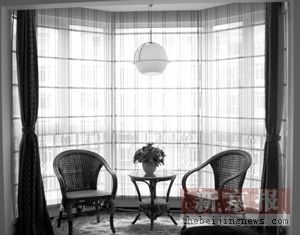 在通透的客厅空间里,有一个小小的角落,虽然面积不大,但是却非常温馨。原来,武太太考虑到老公经常在外面操劳,有时候在家也需要一个安静的下午和一份最放松的心情。于是在客厅的窗户下,摆设了一套藤制的桌椅,既使居室内的空间更饱满,又让丈夫能拥有最舒适的居家体验,而方便拉伸的竹帘也使人能更好地调节光线和舒适度。