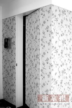 在一间大户型的居室内,拥有衣帽间并不是什么怪事,但是这间居室的衣帽间设计却很巧妙。在门厅处,有一块很花哨的壁纸墙,不细看是不会发现里面还暗藏玄机:壁纸墙上藏着一扇门,里面是一个衣帽间。通过壁纸和白墙的组合,既制造了墙体的层次感,又将衣帽间巧妙地隐藏起来,带来不一样的细节感。而壁纸一直延伸至餐厅的墙面上,更使空间具有很好的衔接度。