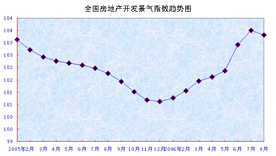 中新网9月15日电 据国家统计局网站消息,8月,“国房景气指数”为103.31,比7月份回落0.20点,比去年同月上升1.55点。