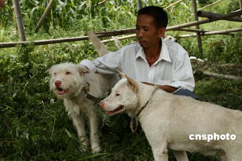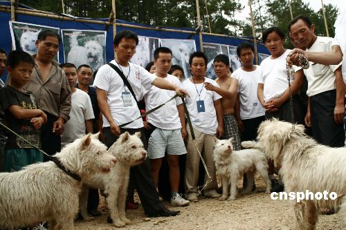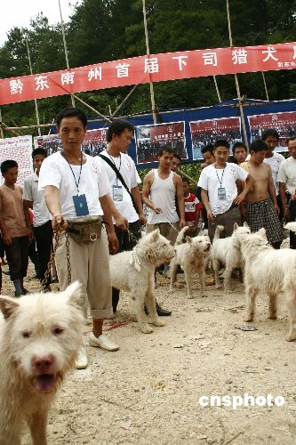 2006年7月24日,贵州凯里国际芦笙节系列活动中首次举办下司猎犬展示,贵州各地养犬爱好者选送的100余条下司猎犬参加展示会,并进行捕猎、打斗等项目表演。据悉,贵州麻江下司镇的下司犬有“眼象三角、耳象叉,尾如钢鞭腰一卡,它和虎、豹是冤家”之称得深山世界名犬。中新社发 章静 摄