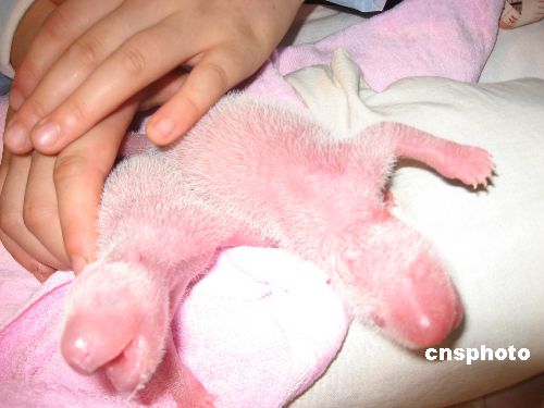 8月6日,今年全球第一对大熊猫双胞胎在成都大熊猫繁育研究基地顺利诞生。出生大熊猫幼子体重分别为169克和119克,均为雄性。目前,母子均平安健康。图为工作人员正在为刚刚出生的大熊猫幼子喂奶。中新社发 兰景超 摄