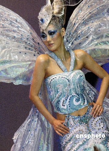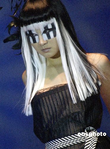 7月9日,模特展示2007中国发型化妆美甲潮流趋势新款作品。为期4天的“2006(第十二届)中国国际美容美发节”当日在北京国际会展中心落幕,闭幕式上举行“2007中国发型化妆美甲潮流趋势发布”,综合演绎了中国发型化妆美甲潮流趋势。在创意作品上,设计师更加注重流行色彩的搭配,风格上采用传统与现代文化相交融,突出创新意识。中新社发 钱兴强 摄