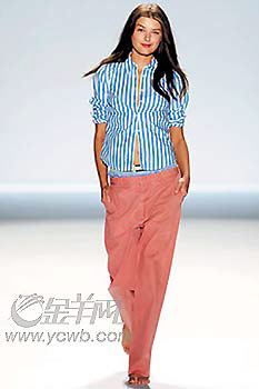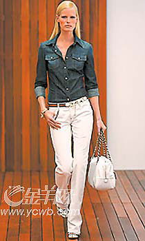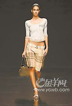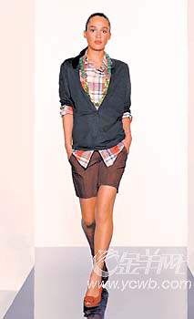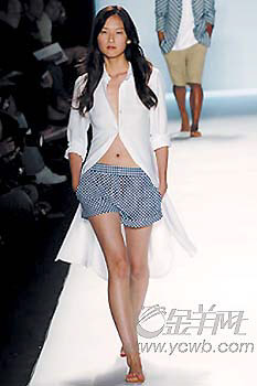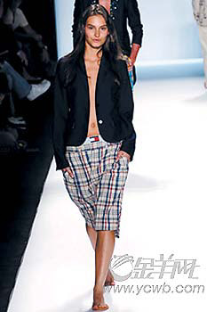 而更加随意的Tommy Hilfiger,则将浪漫的海滩风情演绎得更随性,以宽大有型的格仔短裤搭配随意敞开的休闲衬衫,简单明了,一头长发和敞开的领口是最具风情的女性化标签。
