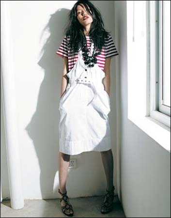 女扮男装:如此放松的心情,随意穿上他的大T恤,男生的率性和女性的柔美,在海军风格的条纹中,渐渐散发。