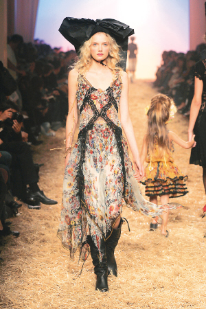 纯白色有肩带的大摆连衣裙最为完美的,剪裁得当,腰身合适。款式方面以维多利亚式内衣为灵感,古典蕾丝及英格兰刺绣的织物为今季各系列的重点,此外棉布亦改良得更为舒适。麻质牛仔布及水洗丝亦同样地提供自然舒适的感觉。浅色印花的、渐变颜色的、有蕾丝边装饰的、细吊带的,衬衫式的、有empire line腰线的……一件时尚而动感的连衣裙都会让人的眼前一亮。薄而柔软的内衣款式连身裙配衬轻薄透孔及网状的针织物,宽大松身的半截裙及连身裙营造出一种漫不经心的感觉,及膝短袍及长裤外的西装背心衬托出点点中性的味道。