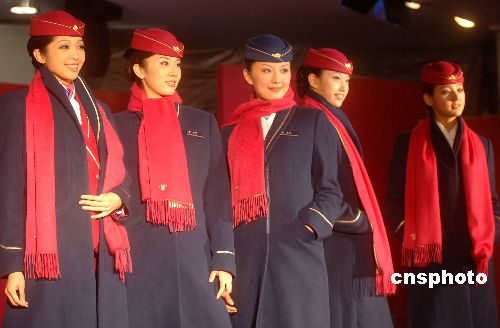 八月二十二日,中国南方航空股份有限公司为展现风采,邀请来自法国、日本、澳洲等国内家著名服装设计单位参加投标设计。最后法国著名服装设计师STEPHANG SOH(史提浦·苏)入围三甲为南航空乘服务员设计制服。图为法南航空姐展示法国著名服装设计师STEPHANG SOH(史提浦·苏)设计的新装。中新社发 何泉 摄