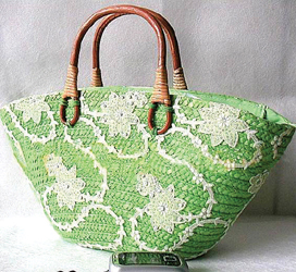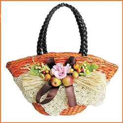 田园藤包用天然的藤草编制而成,每个包包在最初触摸的瞬间,都会有一缕似芳草般的清香在空气里游走,让人心旷神怡。而这类包包除了本身的气息,外在设计上还添加了许多时尚的元素,譬如素雅纯洁的蕾丝花边或是经典的轻纱蝴蝶结边,配上藤的质感,装饰出了优雅的度假风情;丝缎锦织成的大朵花饰,诠释着夏日的温情和淑女的典雅;简练的皮革提柄和经典的金属带扣,在细节的变换混搭中,增加了包包的实用度;流苏的轻曳和水钻的陨落于包面,让包包在阳光里散发出迷人的光芒来;最有趣的当属那种可以以假乱真的水果花饰,不仔细看,还真以为是新鲜水果,让人忍不住想摘下来尝一口呢。除了配饰外,田园藤包的色彩和造型也是丰富多彩的,粉色的,蓝色的,纤巧的贝壳状,倾说着对海的思念;绿色的长方形,宛若从森林里跳出来的精灵,在清爽中透着生命的灵动;还有那委婉的波浪形、弯月形等等,一只只恍如艺术品般在跌进眼底的刹那,让人驻足不前。