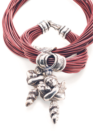 今季的珠宝系列,木质、纯银、珍珠和皮绳等多材质的混合配搭格外抢眼。有将木材和纯银和谐地组合在一起,也有将米色或谷仓红色的多条皮绳交织在一起形成颈圈与手镯,配以银制青铜造型的吊坠,张扬地阐释着原始的自由。