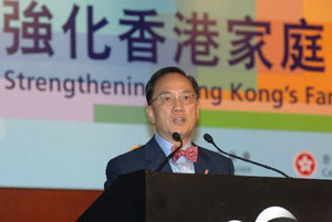 曾荫权五日在中央政策组举办“强化香港家庭--认识、承担与行动”研讨会上表示,随着社会不断进步、生活步伐愈来愈急促,香港家庭面对不少挑战与压力,例如:工时过长,家人相聚时间不足够;家庭暴力的问题;单亲家庭和双职工家庭 —- 尤其是工时长、入息低、有年幼子女的双职工家庭对于托管服务及亲职教育有殷切需求;有年长患病或残障家庭成员的家庭需要支持等。