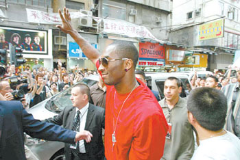 较早前,科比与两名“成长希望基金会”的小球迷走访了旺角的“波鞋街”,为他们挑选篮球用品。在前往理工大学途中,科比还突然要求下车,到一个篮球场与正在打球的青年切磋球技。