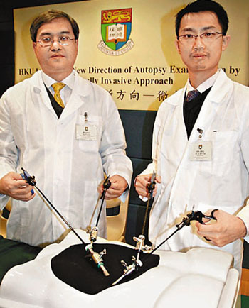 为了让家属较易接受验尸,港大外科学系的微创专家研究利用微创技术验尸,在腹部开四至五个直径0.5至1厘米的伤口,利用腹胸腔镜或内窥镜检视胃、肝、肠和胰脏等胸腔内的器官以寻找死因。