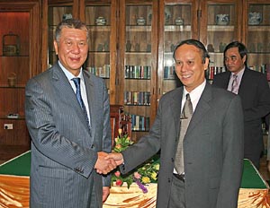 何厚铧十日上午离开河内,乘船畅游越南著名旅游景点下龙湾后,到海防市乘搭澳航专机飞抵岘港,两地政府高层并举行了会谈。陈文明表示,岘港是越南的中央直辖区,也是国家一级城市,他希望外间有更多的投资者到岘港投资、合作,促进岘港的进一步发展。