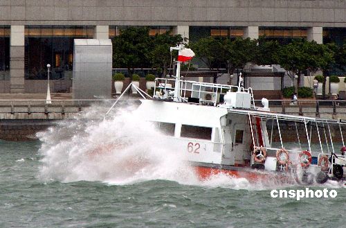 8月3日上午,香港天文台发出的热带气旋三号强风信号警告,台风“派比安”集结在香港西南约290公里之处,维港内风力强劲。中新社发 洪少葵 摄