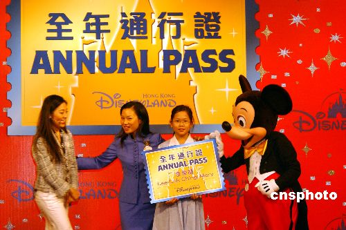 香港迪斯尼乐园9月28日颁发首套全年通行证予李乐晴(右二)及其家人,李乐晴小朋友以睡公主为背景的迪斯尼线列车画作,近日被选中于地铁站内画廊展示。香港迪斯尼乐园宣布将于29日推出三种年票,包括特惠、优越及尊贵全年通行证,让游客获得更多奇妙惊喜。中新社发 蔡蔓莉 摄