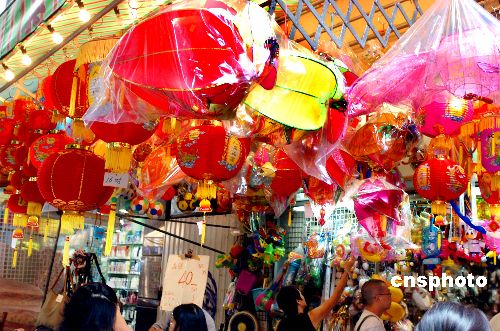 中秋节前夕,香港街市各式花灯琳琅满目,买主踊跃。香港回归后中国传统节日逐渐热闹,传统文化逐渐得到继承﹑弘扬。中新社发 宋吉河 摄