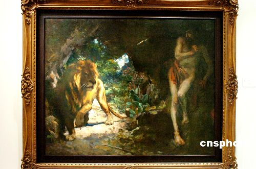 徐悲鸿1924年创作的油画《奴隶与狮》﹐11月26日在香港佳士得举行的亚洲历来规模最大的拍卖会上﹐以5千3百80万港元成交。拍卖会上推出2﹐500件瑰宝总价值逾11亿港元﹐中国画陶瓷及宫廷御制艺朮精品﹑中国古代书画﹑20世纪中国艺朮﹑当代中日韩及印巴艺朮﹑现代及当代东南亚艺朮﹑瑰丽珠宝翡翠及精致名表。中新社发 宋吉河 摄