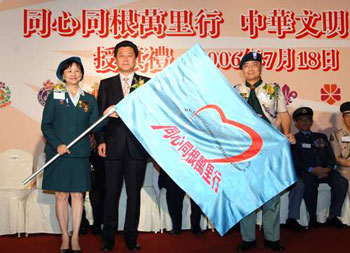 澳门日报消息称,参加“同心同根万里行二○○六——中华文明之旅”活动的澳门区三个制服团体,于本月十三日拜会行政长官何厚铧,并获何厚铧主持出发前的授旗仪式。