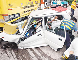 据悉,昨午三时许,四人完成灭虫工作后,由张驾驶其自置的大发K-Car,接载三名女同事往西贡。当时沿将军澳坑口道上斜对出左弯时,该车突然失控越过对面行车线,一辆二十四吨重的泥头车迎面落斜驶至,姓江(五十九岁)司机表示,他离远见该车越线铲来,急忙收掣减速,可是仍然迎头狂撼,撞击力猛烈,泥头车将K-Car推后十公尺,返回其原线,K-Car车头嵌入泥头车底,严重折曲毁烂如废铁,车上四人重创昏迷。