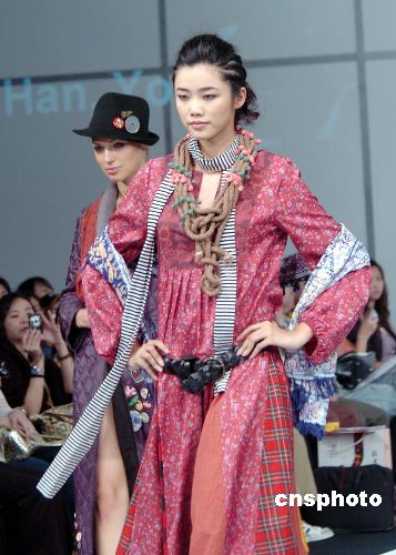 7月11日,香港理工大学纺织及制衣学系硕士毕业生时装作品展在会展中心举行,模特演绎13名获选的毕业生创意服饰设计。中新社发 洪少葵 摄