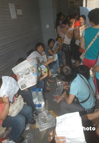 连日来,澳门数千市民在中华广场通宵达旦排队等候领取博彩培训班的报名表。由于报名人太多,名额有限,一度曾发生混乱。警方出动数十名警察维持秩序。中新社发 史利 摄