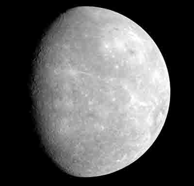 水星是太阳系最小的一颗行星,由于它与太阳距离很近,人类对它知之甚少,来自太阳的光线使地球上的人们很难观测水星。当飞行器先前飞近水星时,水星的一个半球在阳光的照射下,另一半球则被黑色所笼罩。当“水手10号”探测器1974年和1975年飞过水星时,它都只拍到了被阳光照射的那个半球。