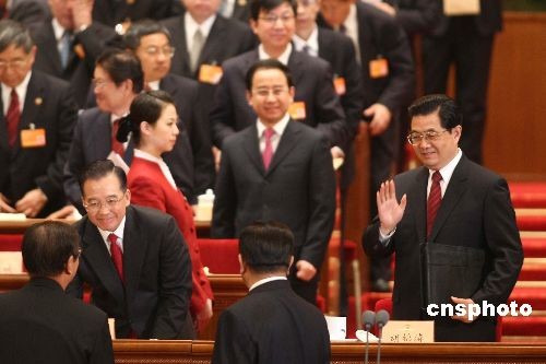 图:胡锦涛、温家宝出席全国政协闭幕会