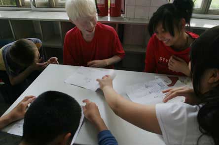 昨天下午5时许,盲校学生颜登飞和刘文英、智花、江涛3个同学拿着画,在学校食堂等候。他们说,想把画交给蒙牛的叔叔阿姨。用他的话来说,“一切尽在不言中,想说的话都在画里”。