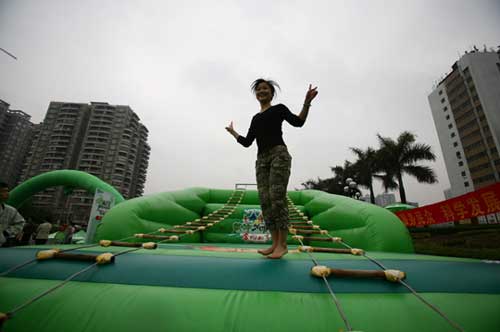 记者在比赛现场了解到,广州今年的海选从3月28日持续至3月31日,前3天通过各种集趣味与竞技于一体的体育项目,如勇攀高峰、铁人三项赛、跋山涉水、遇水迭桥、控球挑战赛、击剑等海选出150名选手,在31日参加晋级赛,最后产生10名广州城市英雄,进入南区复赛。复赛中胜出的南/北方20强城市代表队将参加全国总决赛,最终决出10强城市代表队组成中国队,进军09《蒙牛城市之间》国际比赛。