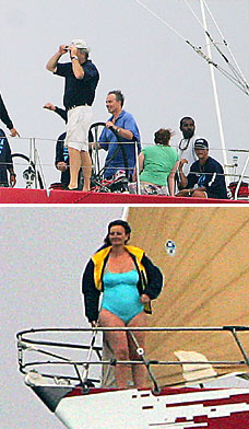 中新网8月24日电 当地时间周二,布莱尔全家加勒比海登上“阿西娜号”游艇,徜徉在风景优美的加勒比海上。而布莱尔夫人切丽一时兴起,穿着泳装来到船头,迎着海风凝视着远方,掩饰不住骄傲满意的神情,欲重温《泰坦尼克号》电影的经典镜头。可惜的是,布莱尔并不在身边。