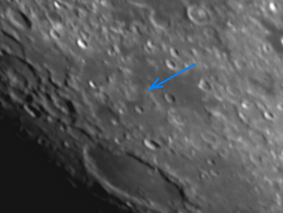 “智能1号”撞击月球的预定地点是“湿海”南侧的“卓越湖”的地方, 这里是一片坑洼不平的丘陵地带,西尔维亚在2006年7月8日拍摄的另一张图片显示了那里的地形。