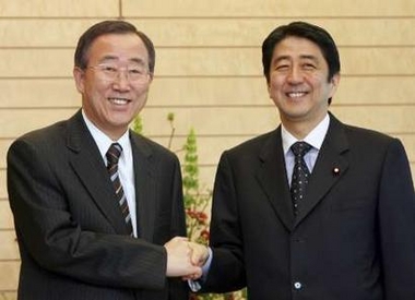 中新网东京11月6日电 日本首相安倍晋三与外相麻生太郎分别与即将就任联合国秘书长的韩国外交通商部长官潘基文举行了会晤,就朝核等问题交换了意见。