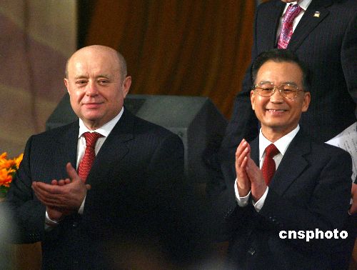 会晤后,温家宝和弗拉德科夫共同出席了《中华人民共和国政府与俄罗斯联邦政府关于鼓励和保护相互投资的协定》以及两国有关部门关于和平利用核能中期合作的谅解备忘录、教育合作协议等双边合作文件的签字仪式。(完)
