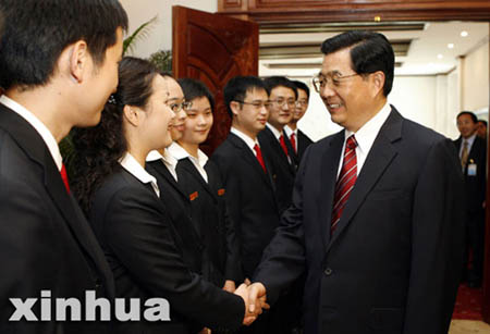 “好,为你这番话鼓掌!”胡锦涛总书记高兴地说。热烈的掌声再次响起,幸福的心情写在一张张年轻的脸上。