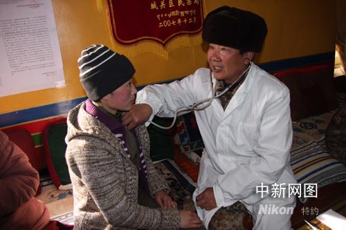 4月10日,李素芝将军在西藏寺庙为僧尼检查身体。 陈辉 摄