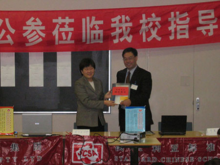 在赠书仪式上,朱小玉公参代表中国国家汉办向澳大利亚标准中文学校校长李复新转交了赠送的中文图书书目,并宣布“澳大利亚标准中文学校中文图书室”正式开放。朱公参希望社区中文学校能遵循教育发展的规律,努力提高教育质量,利用多媒体教材生动形象的特点,调动学生学习中文的积极性。她鼓励澳大利亚标准中文学校探索“快乐学习”的教法,成为堪培拉地区社区中文学校的典范,从而带动堪培拉社区中文教育的发展。