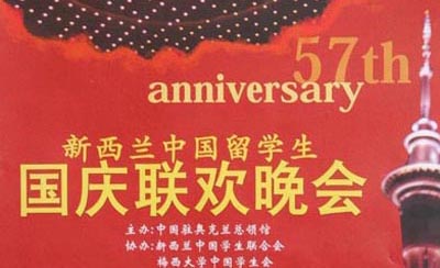 中新网9月21日电 据新西兰Skykiwi网站报道,9月22日周六晚上6点半,奥克兰总领馆与新西兰中国留学生为共迎国庆57周年特在Epsom Girl High Hall( Silver Road Epsom), 举办国庆联欢晚会。届时会有各个高校的精彩表演,梅西大学的代表梅西大学华人学生会(Massey University Chinese Students‘ Association)将会在晚会上出6个节目,AUT也将有3个节目演出。