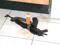 事后陈先生又追出客厅,向夺命而逃的歹徒又开了一枪,其中一名亲戚还捡起歹徒丢下的AK-47也向逃跑的歹徒连开几枪。