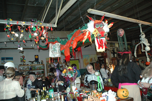 今年的万圣节,王维力老师与他的美国学生们把会场布置得别具一格:王老师几十年来积累的各式各样东西方收藏品、艺术品布满了他的客厅、厨房、卧室,车库里横卧着一架咖啡色有39年历史的福特小客车和一架墨绿色29年的雪弗莱,各种点心和酒摆在那些艺术品上,用餐的碟子也是收藏了几十年的宝贝,周围雕龙画风的墙壁上充满中国文化特色,精心布置的屋梁上悬挂的装饰物垂垂悬悬,寥寥落落形成了浓郁的节日气氛......
