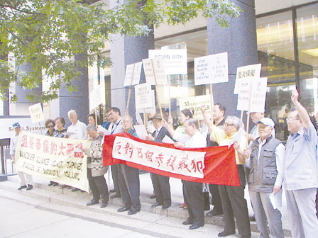 中新网8月18日电 温哥华保钓大联盟20多名成员16日到温哥华日本领事馆前,抗议日本首相小泉纯一郎参拜靖国神社。