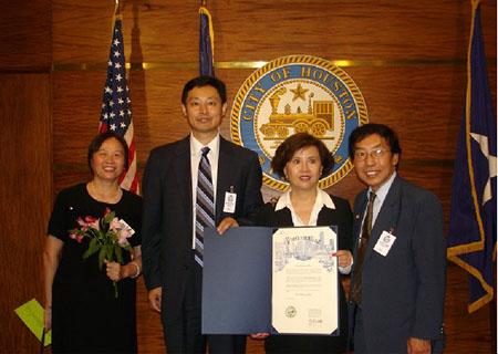 中新网9月10日电 据美国《美中信使报》报道,今年的休斯顿华人社区计划隆重庆祝中华人民共和国成立57周年,早在8月初就正式成立了大休斯顿地区华人庆祝中国国庆系列活动执行委员会。经过一系列的联络和努力, 9月8日下午传出了好消息,休斯顿市长比尔•怀特(Bill White)先生决定接受系列活动执行委员会的邀请, 亲自参加10月1日晚上由华人社区举行的盛大中国国庆晚宴。怀特市长还委托他的特别助理谭家瑜女士向执行委员会颁发了正式文告, 宣布2006年10月1日为德克萨斯州休斯顿市的“中国国庆日”。