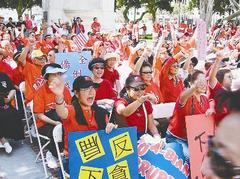 中新网9月11日电 据美国《世界日报》报道,重低音喇叭音效衬托,“阿扁下台”、“9月9,阿扁做不久”等吶喊声震耳欲聋,加上“礼、义、廉、无耻”等各式标语,三百多位华裔侨民,9日用红色的衣服,将洛杉矶市中心人权广场染成一片红海,用行动要求“陈水扁下台”。