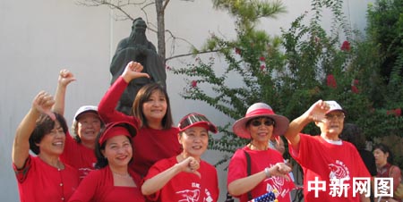 中新网10月9日电 据美国《华夏时报》报道,来自中国台湾的三百多名华人华侨8日上午在休斯敦举行“双十”庆祝活动,他们大多身穿红色T衫,并聚首在孔子塑像前表明“倒扁”决心。