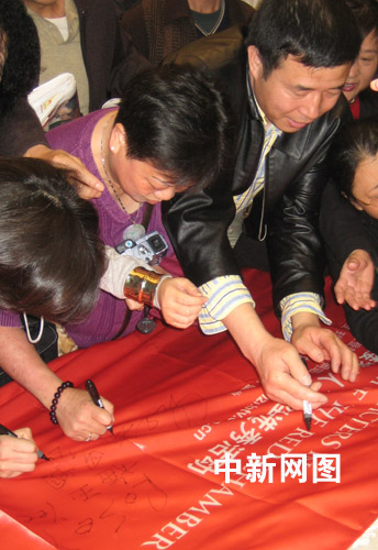 记者在现场看到,由于当地很多华人观众对八十年代经典电视剧《红楼梦》都耳熟能详,很多人对这一活动表示出极大的热情。签名活动一开始,大家都十分踊跃,在特制的一块红色大布上签下自己的名字,表达对这一活动的支持。纽约观众对活动支持的热情程度大大出乎了主办方的预料。签名现场被人群围得里三层外三层,十分热闹。
