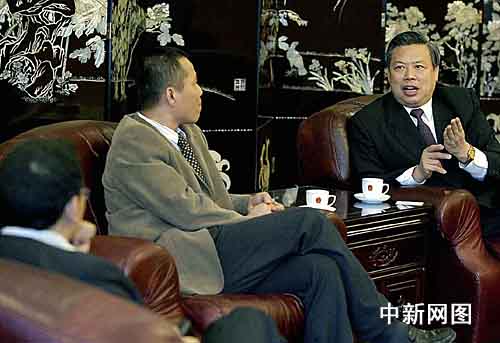 负责与媒体联络的中国驻旧金山总领馆副领事王焕女士会见时在座。