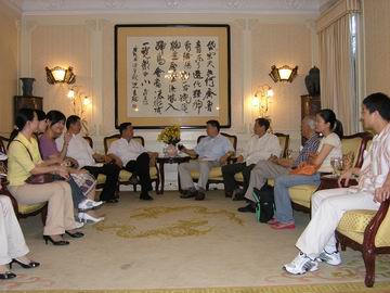 会见时,潘格西南省大同中学校长向李进军大使介绍了志愿者在学校的工作和生活情况,几位志愿者教师向大使汇报他们在菲从教的经历和感受。