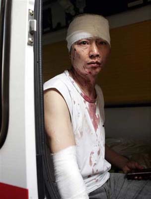 他和父亲以及其他几个雇工在市场6区经营服装生意已经7年。腼腆的小潘看上去有些疲惫,他头部、手臂和腿上有些轻微划伤,目前除耳朵有些不适外,没有其他不良感觉。"像做了一场噩梦,"他说,"想起来真有些后怕。"