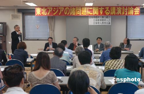 日本华侨华人联合总会、日本新华侨华人会和日本华人教授会议七月二十九日下午在东京举办专题演讲讨论会。邀请旅日华人学者、韩国学者和日本学者与会共同探讨、分析东亚地区面临的各种问题,尤其是因日本首相参拜靖国神社而导致恶化的中日、日韩关系的未来走向,吸引了许多旅日华侨华人前来参加。中新社发 王健 摄