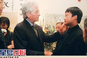 加拿大安大略省公民及移民厅长科尔鼓励蒋国兵儿子蒋珂要勇敢面对人生。(加拿大《星岛日报》图张士雄摄)