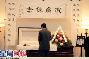 在雷电交加,狂风暴雨的2日晚,蒋国兵生前好友赶去送他最后一程。(加拿大《星岛日报》图张士雄摄)